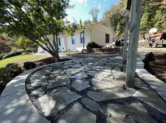 Custom hardscape solutions including patios, walkways, and retaining walls built to last.